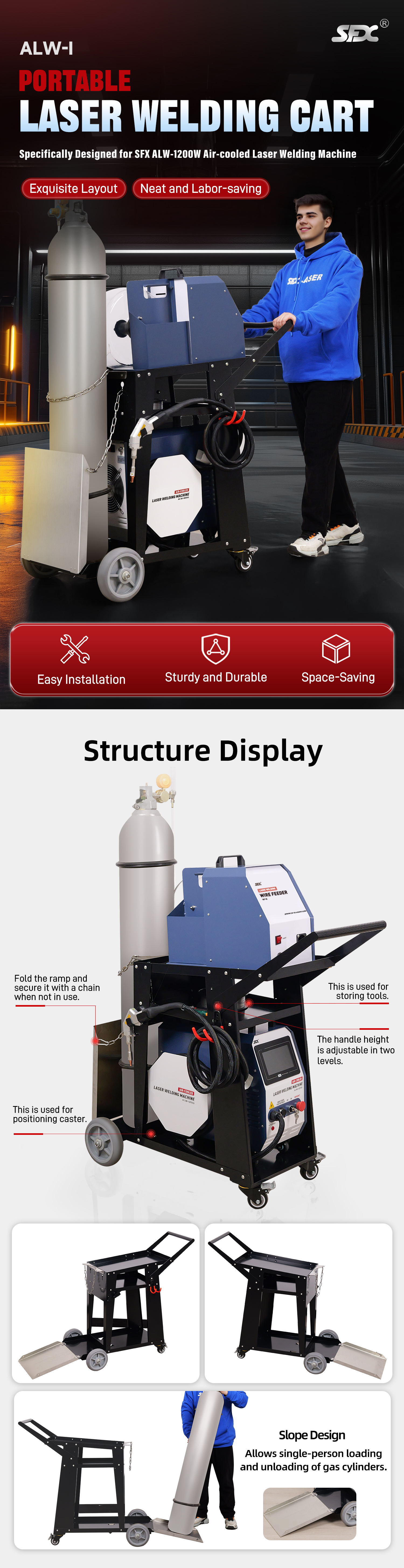 Carro de soldadura láser portátil diseñado específicamente para la máquina de soldadura láser refrigerada por aire SFX ALW-1200