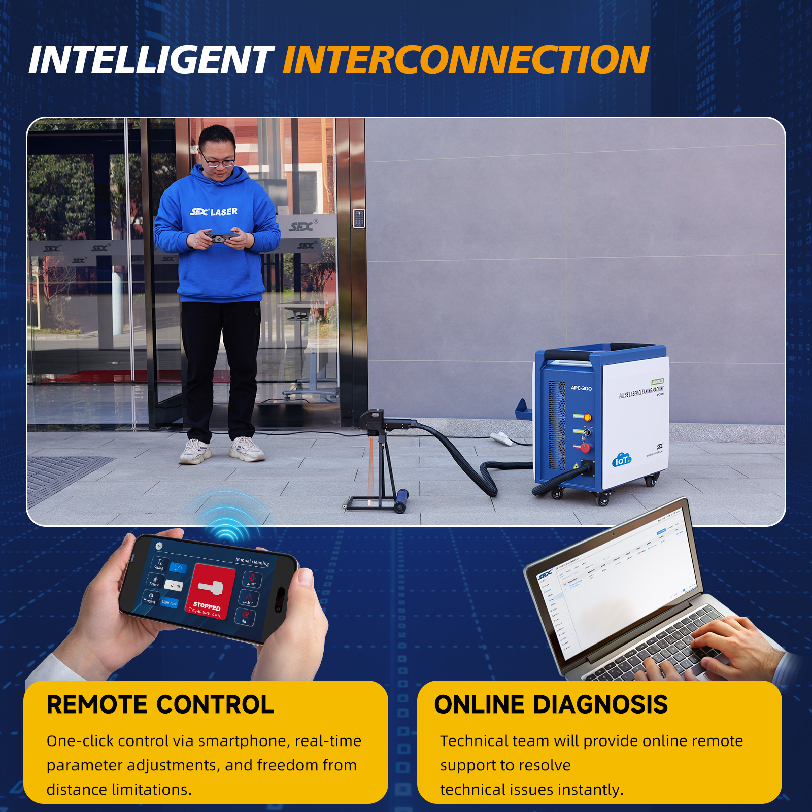 Limpiador láser de madera refrigerado por aire SFX APC de 200 W, 300 W y 500 W SmartLink con tecnología IoT y dispositivo autopropulsado.