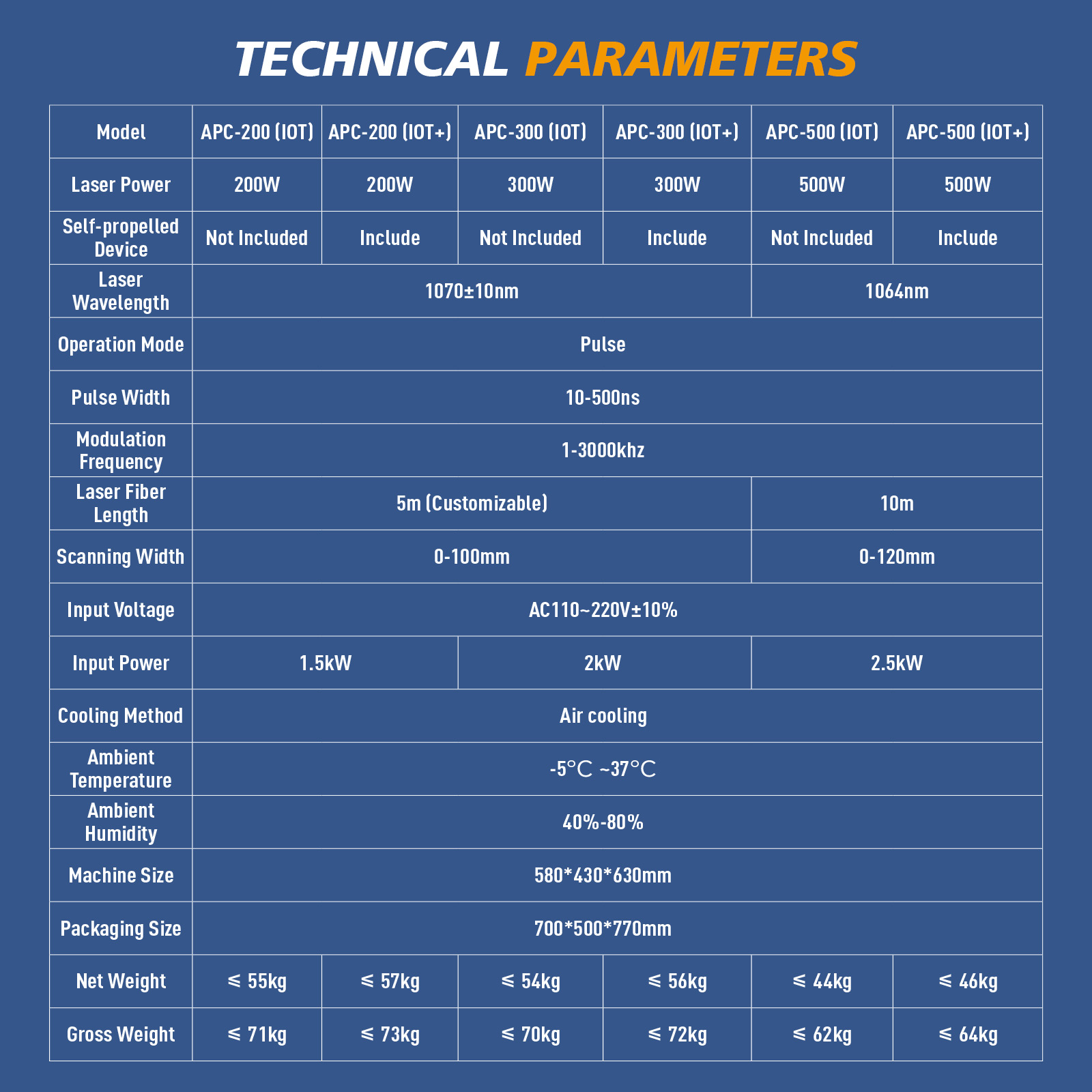 - Longitud de fibra láser: 5 m (personalizable); 10 m (500 W)